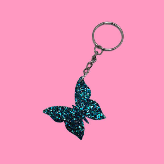 Porte-clé papillon bleu paillettes
